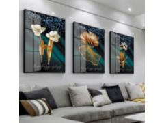 轻奢客厅装饰画沙发背景墙壁画现代简约大气三联画挂画镶钻晶瓷画